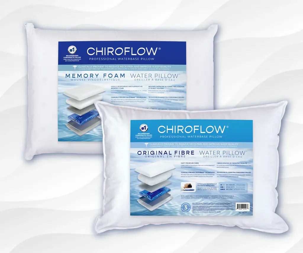 Chiroflow pillows are water-based and designed to provide personalized comfort and support throughout the night. By adjusting the water level, you can easily customize the firmness and height to suit your needs. The pillow conforms to your head and neck to support proper alignment. .